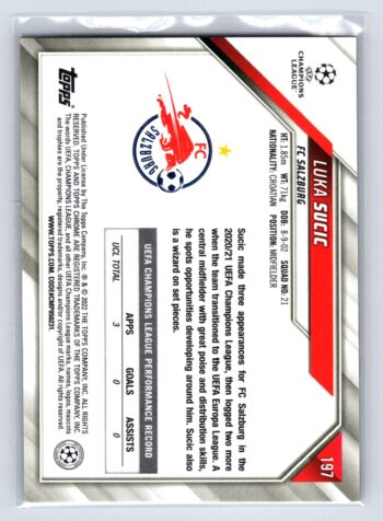 Luka Sucic RC Rookie Black & White Raywave Refractor 2022 Topps Chrome UEFA Champions League