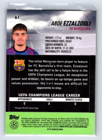 Abde Ezzalzouli RC Rookie Pink 2022 Stadium Club UEFA Champions League