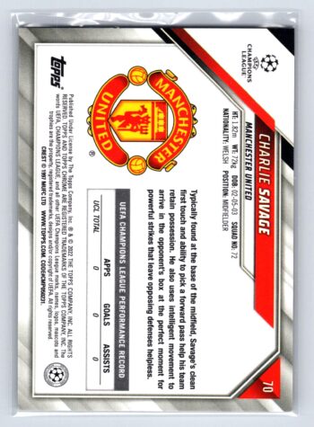 Charlie Savage RC Rookie Black & White Raywave Refractor 2022 Topps Chrome UEFA Champions League
