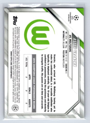 Aster Vranckx Rookie RC Speckle 2022 Topps Chrome UEFA Champions League