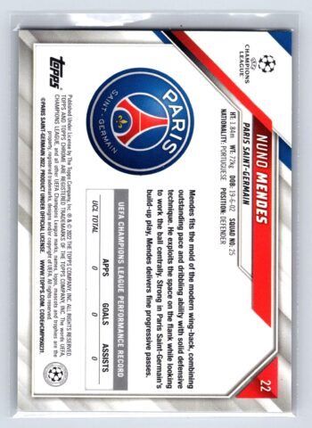 Nuno Mendes Rookie RC Speckle 2022 Topps Chrome UEFA Champions League