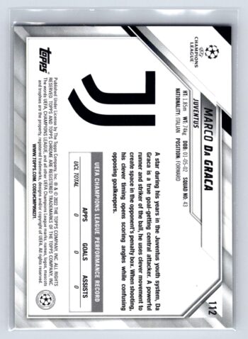 Marco Da Graca RC Rookie Black & White Raywave Refractor 2022 Topps Chrome UEFA Champions League