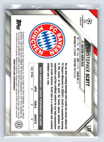 Christopher Scott RC Rookie Black & White Raywave Refractor 2022 Topps Chrome UEFA Champions League