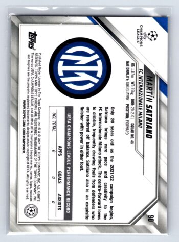 Martin Satriano RC Rookie Black & White Raywave Refractor 2022 Topps Chrome UEFA Champions League
