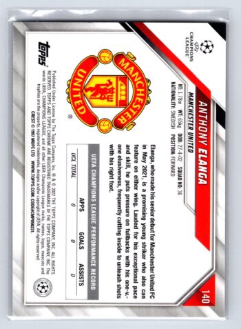Anthony Elanga Rookie RC Speckle 2022 Topps Chrome UEFA Champions League