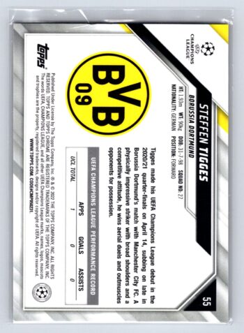 Steffen Tigges Rookie RC Speckle 2022 Topps Chrome UEFA Champions League