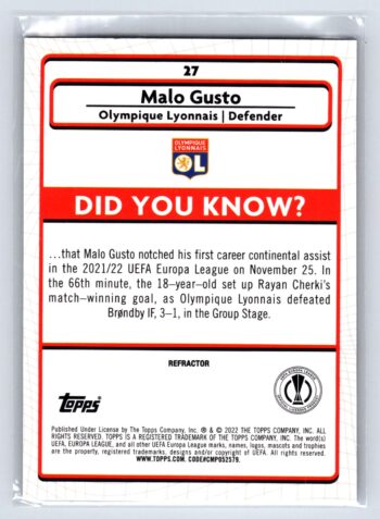 Malo Gusto RC Rookie Refractor 2022 Merlin UEFA Champions League