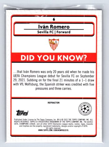 Ivan Romero RC Rookie Refractor 2022 Merlin UEFA Champions League