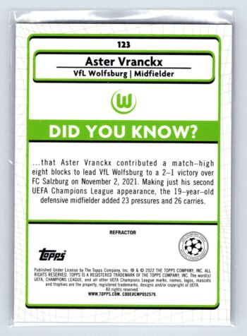 Aster Vranckx RC Rookie Refractor 2022 Merlin UEFA Champions League