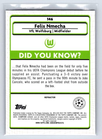 Felix Nmecha RC Rookie Refractor 2022 Merlin UEFA Champions League