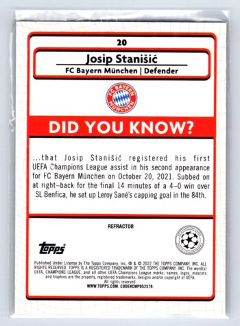 Josip Stanisic RC Rookie Refractor 2022 Merlin UEFA Champions League