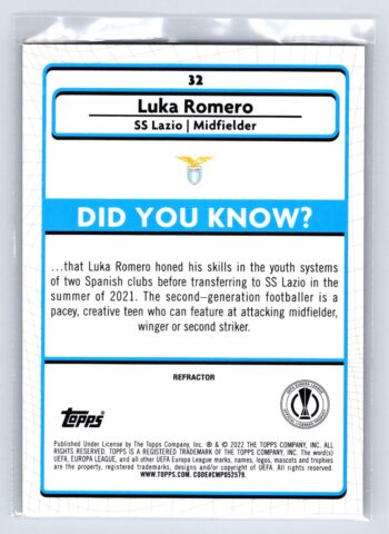 Luka Romero RC Rookie Refractor 2022 Merlin UEFA Champions League