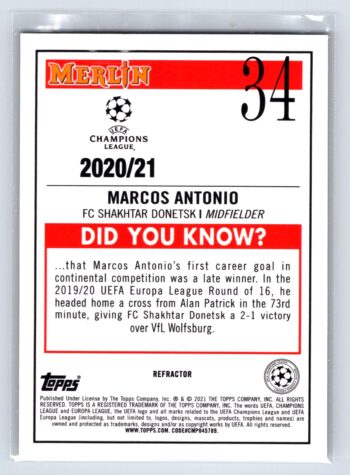 Marcos Antonio RC Rookie Refractor 2021 Merlin UEFA Champions League
