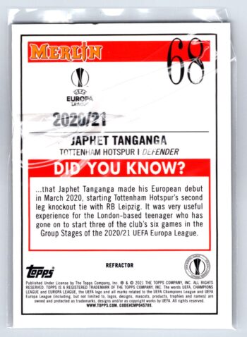 Japhet Tanganga RC Rookie Refractor 2021 Merlin UEFA Champions League