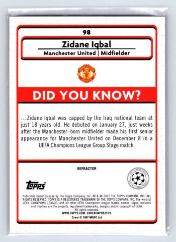 Zidane Iqbal RC Rookie Refractor 2022 Merlin UEFA Champions League