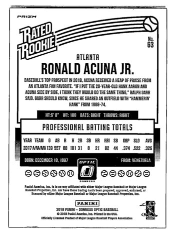 Ronald Acuna Jr. RC Purple Donruss Optic Rated Rookie