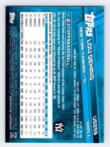 Lou Gehrig Image Variation Topps