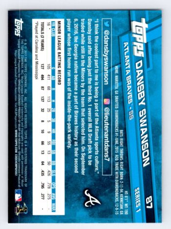 Dansby Swanson RC Image Variation Topps