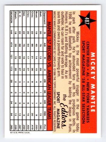 Mickey Mantle 1989 Sport Magazine All Star Topps Commemorative Set