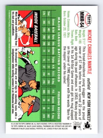 Mickey Mantle 2008 Topps Factory Set Chrome Blue Refractor #MMR-54 HOF