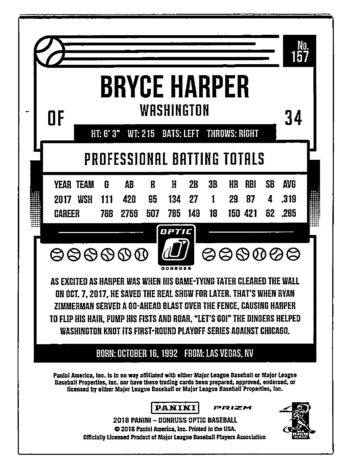 Bryce Harper Pink Holo Refractor Donruss Optic