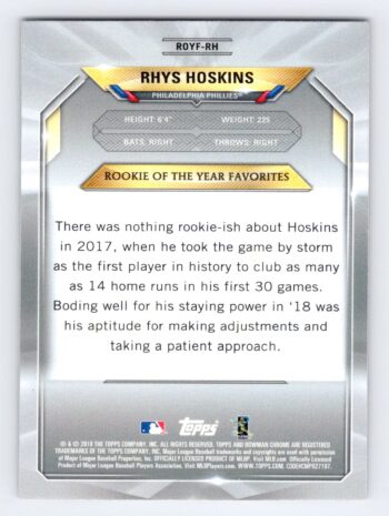 Rhys Hoskins RC ROY Favorites Bowman Chrome