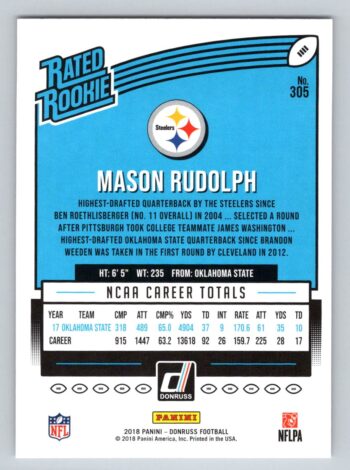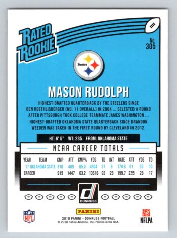 Mason Rudolph RC /99 Autograph Donruss Elite