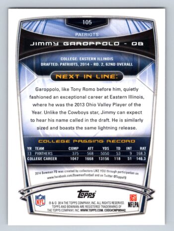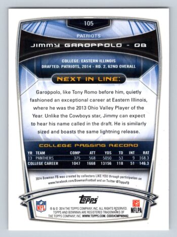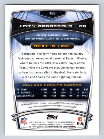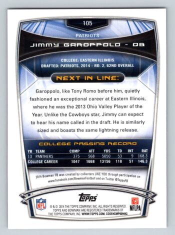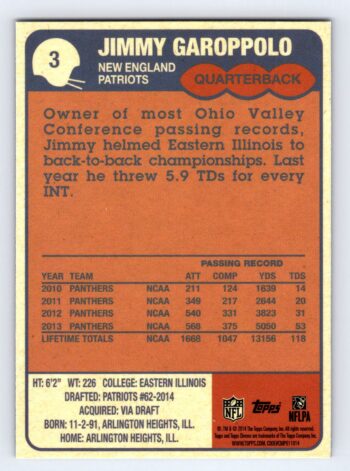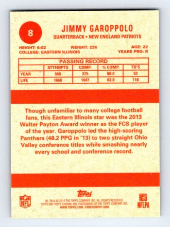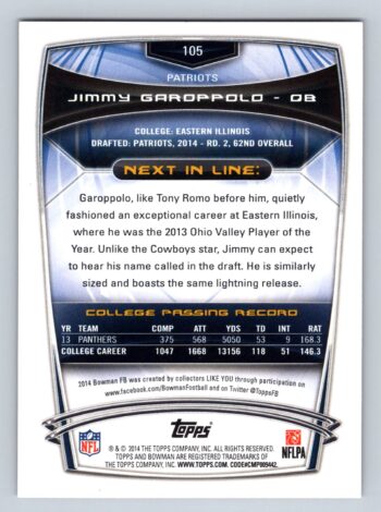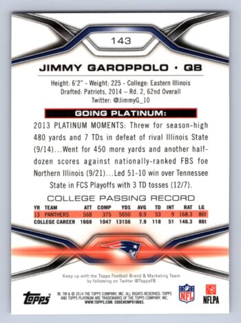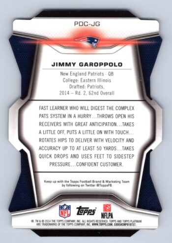 Jimmy Garoppolo 2014 Topps Platinum Die-Cut Rookies #PDC-JG Rookie RC