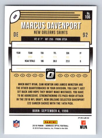 Marcus Davenport RC Refractor Holo Donruss Optic